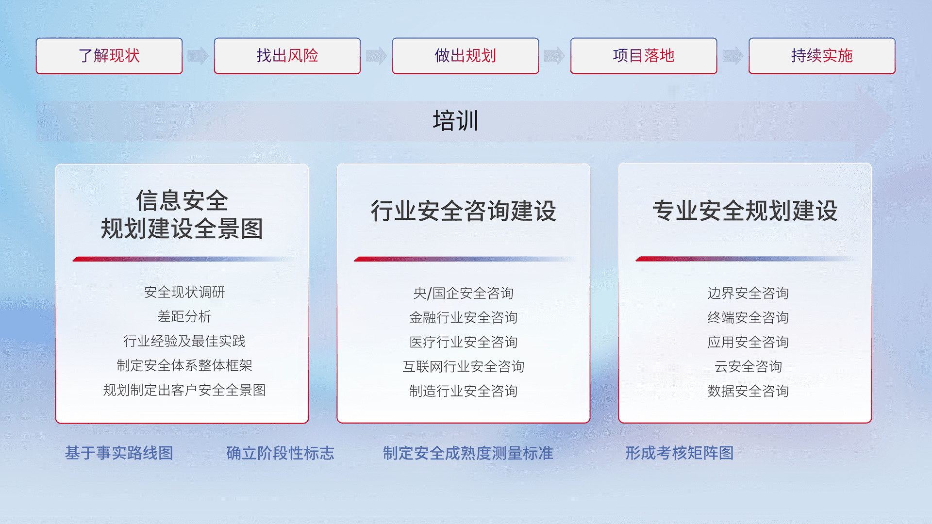 梳理客户信息安全现状调研、、差距分析结果,,,,结合行业先进经验及最佳实践,,,制订客户的信息安全管控体系总结架构,,,,最终形成一个完整的客户信息安全规划与建设的全景图。。。。